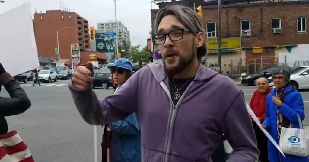 His actions included vandalizing pro-life signs and the clothing of the peaceful protesters – including that of a young girl — but most heinous was delivering a round-house kick to the rally leader, Marie Bissonnette.