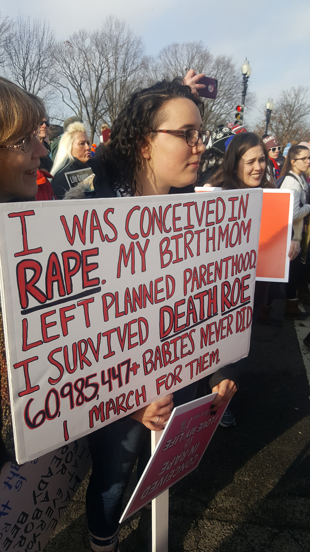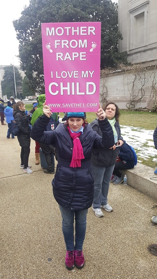 Jennifer Christie was among those who marched, as she clutched a sign that read “Mother From Rape, I Love My Child.”