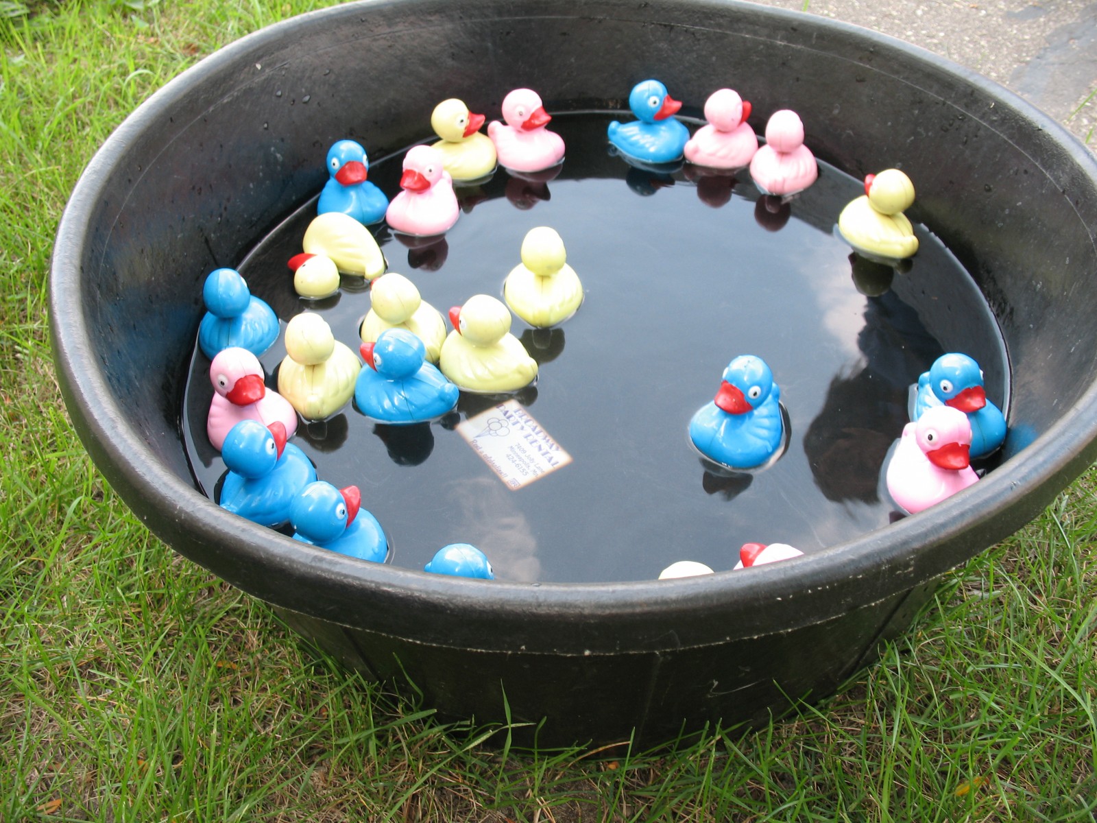Fill your kids’ backyard wading pool with water and grab a few inexpensive rubber ducks or toy animals made for bathtime at the dollar store. Write a number on the bottom of each that matches a corresponding prize and you’ve got your own carnival duck pond.