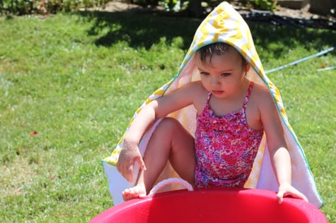 Whether it is from splashing, or just a way to protect your little one from the wind and sun, having a towel with a hood on it is a good idea.